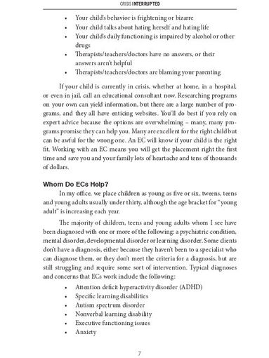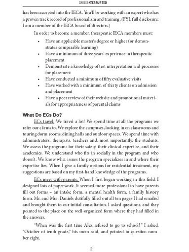 In Crisis Interrupted: A Parents' Guide to Residential Treatment for Children, Teens and Adults, renowned educational and therapeutic consultant, Lucy Pritzker, provides parents with expert details about the process of placing a child in residential treatment. A Professional member of the Independent Educational Consultant Association, Lucy compassionately and succinctly guides you through treatment options and what to expect. In this book you will discover: